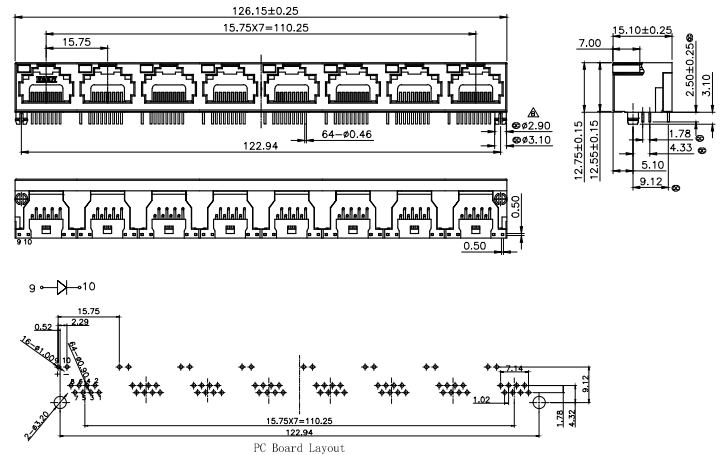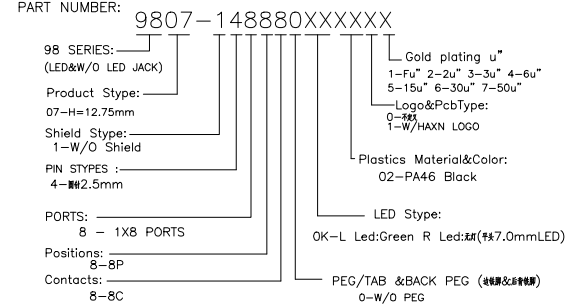 9807 1X8 全塑 左有灯 圆针